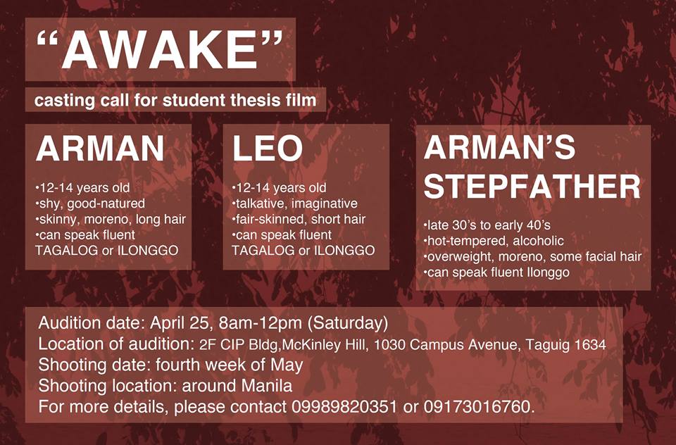 Philippine Auditions 20 April 2015 database serves as an intermediary for freelance talents all over the country in need of jobs. Please contact the people quoted directly as their contact info are included.