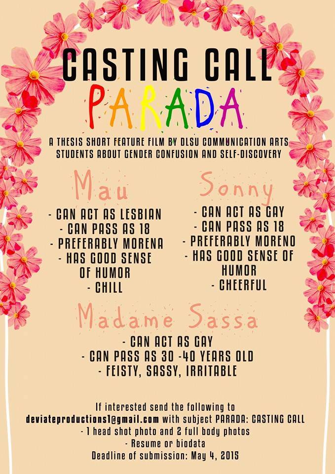 Interested? Email your short profile with headshot and full body photos and contact details at strangechiq_jed@yahoo.com and melramos03@gmail.com. Please include the intended role in the subject.